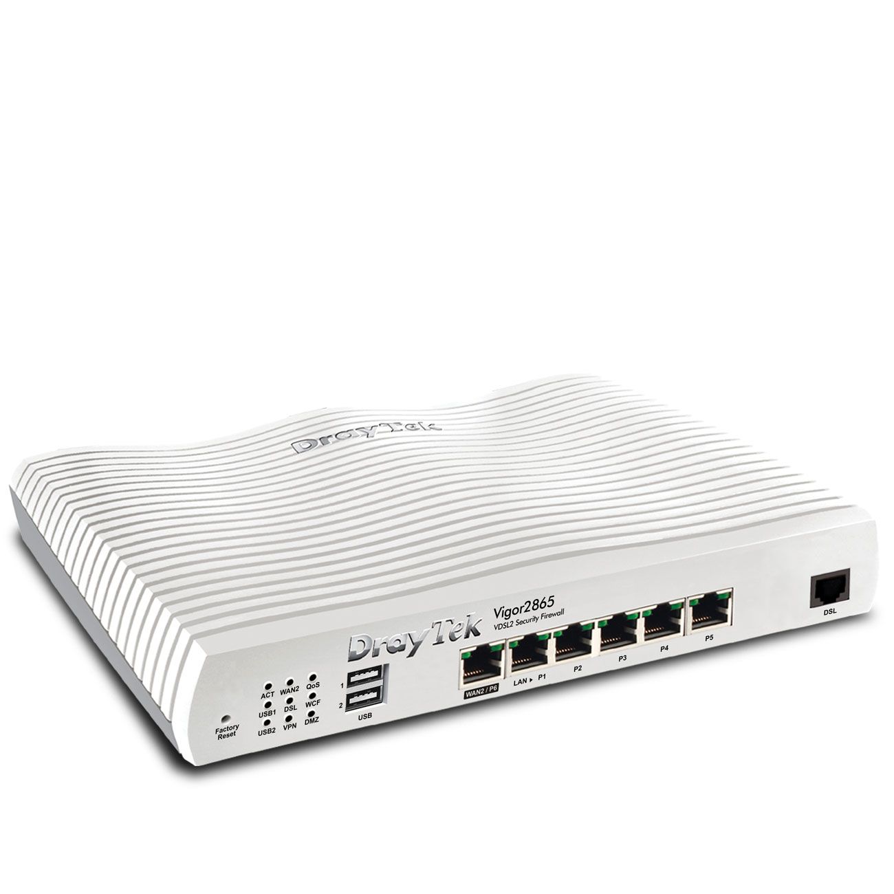 DrayTek Vigor 2865. Netzstandard: IEEE 802.1Q, Ethernet Schnittstellen Typ: Gigabit Ethernet, Verkabelungstechnologie: 10/100/1000Base-T(X). Unterstützte Sicherheitsalgorithmen: WEP, WPA, WPA2. Stromverbrauch (Standardbetrieb): 24 W, Energiequelle: Gleichstrom, AC Eingangsspannung: 220 - 240 V. Breite: 241 mm, Tiefe: 166 mm, Höhe: 46 mm