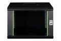 Die Netzwerkschränke zur Wandmontage der Unique Serie wurden für eine besonders komfortable und flexible Netzwerkverkabelung entwickelt. Im Dach eines jeden Schrankes befindet sich ein aufschiebbarer Kabeleinlass mit Moosgummidichtung. Die Rückwand und das Bodenblech sind ausgestattet mit ausgestanzten Kabeleinlässen mit Kunststoffabdeckung. Für die Aufnahme eines Lüftermoduls wird das Dachchassis ebenfalls mit einem ausgestanzten Bereich versehen. Zwei Paar galvanisierte, mit in beide Richtungen ablesbare Höheneinheiten beschriftete 483 mm (19")-Profilschienen sind im Inneren verbaut. Diese lassen sich in der Tiefe verstellen. Jeder Schrank ist eine robuste Stahlkonstruktion aus bis zu 1,5 mm starkem Stahlblech. Die Farbgebung erfolgt in Form von elektrostatischer Pulverbeschichtung in den Standardfarben Grau (RAL 7035) und Schwarz (RAL 9005). Modular abschließ- und abnehmbare Seitenwände sowie die abschließ- und abnehmbare Fronttür, verbessern die Zugänglichkeit. Ein Türanschlagswechsel kann vorgenommen werden. Die Wandmontage erfolgt in zwei einfachen Arbeitsschritten: Die Rückwand des Gehäuses wird an die Wand geschraubt und im Anschluss mit dem Gehäuse verbunden. Mit optional erhältlichen Nivellierfüßen oder Rollen, können die Wandgehäuse der Unique Serie ebenfalls freistehend verwendet werden.