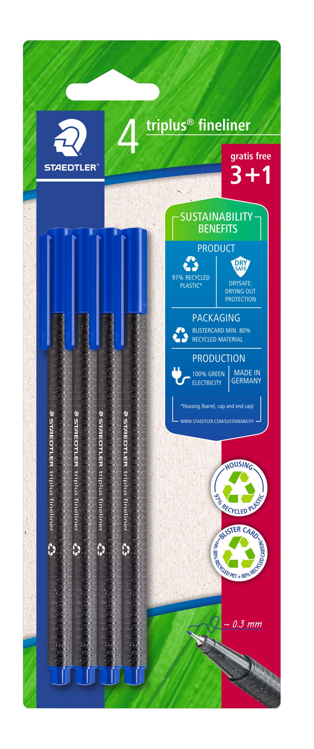 STAEDTLER Fineliner triplus blau 4er-Set retail